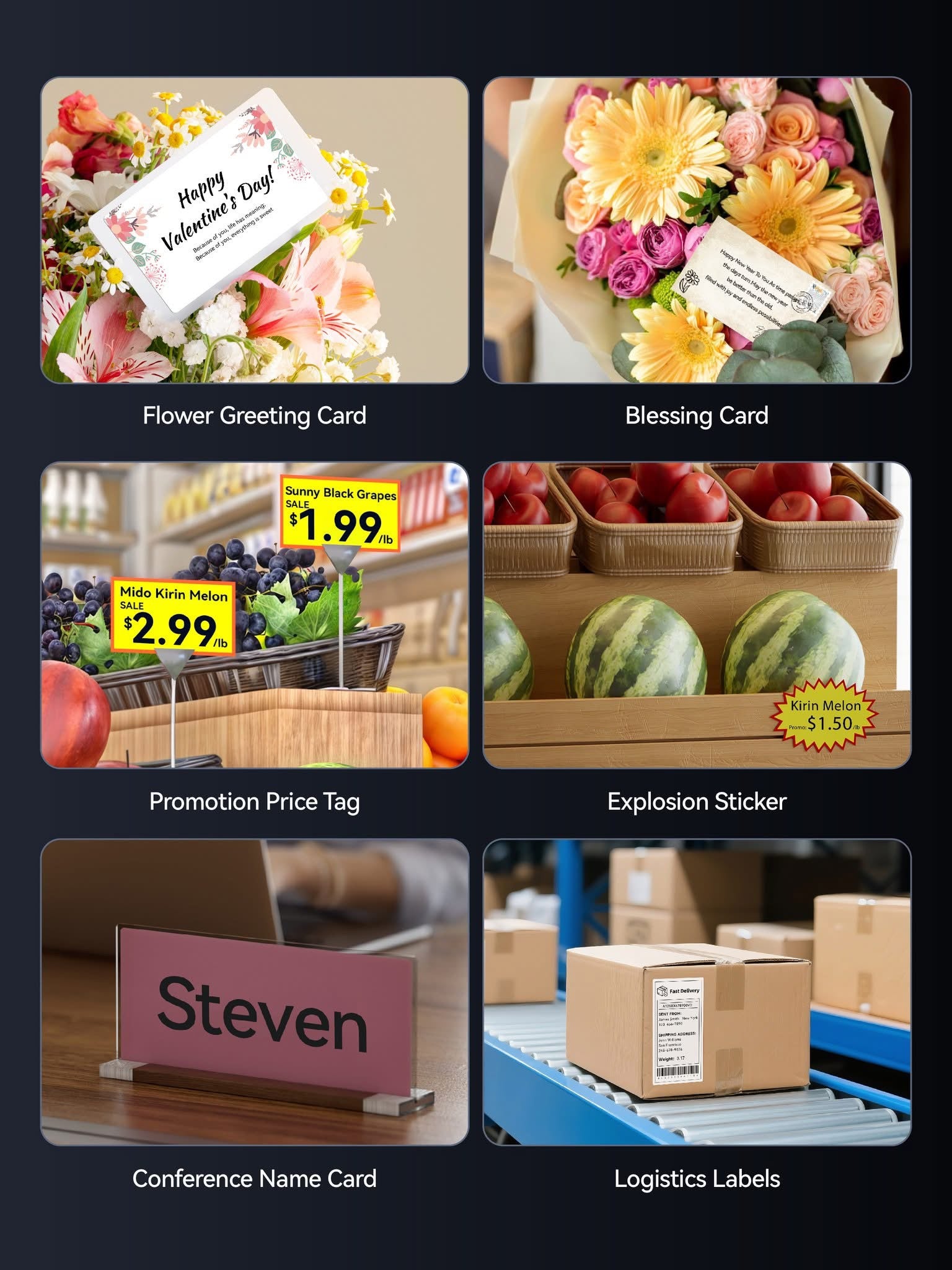 | Specific Uses For Product | label printer for Shipping Package Small Business Product Price Address Retail School and Office Files Classification Home Supplies Organization Personal Item Identification Food Expiration Dates and Warehouse |