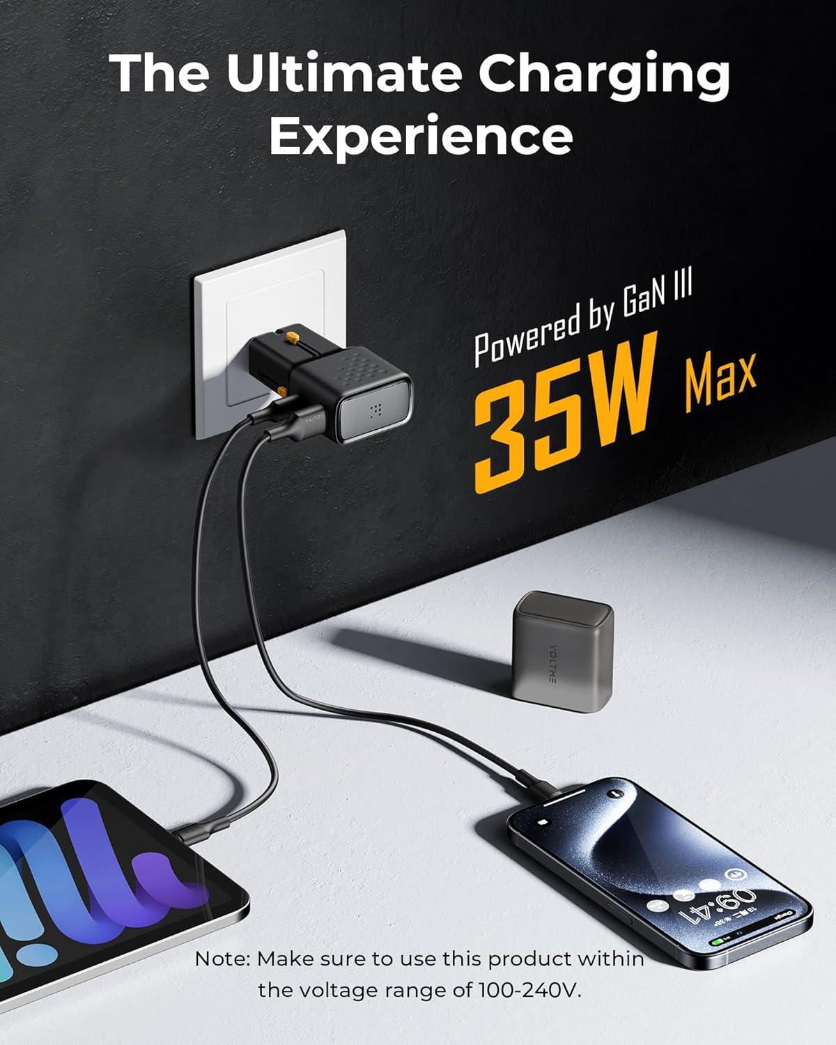 VOLTME VITO Go EzTravel 35W Dual Port Fast USB Charger Plug, GaN III USB C Charger Adapter, Fast iPhone Charger Compatible with iPad Pro/Air, iPhone 15 Pro Max, Samsung S24 Ultra (F4025)
